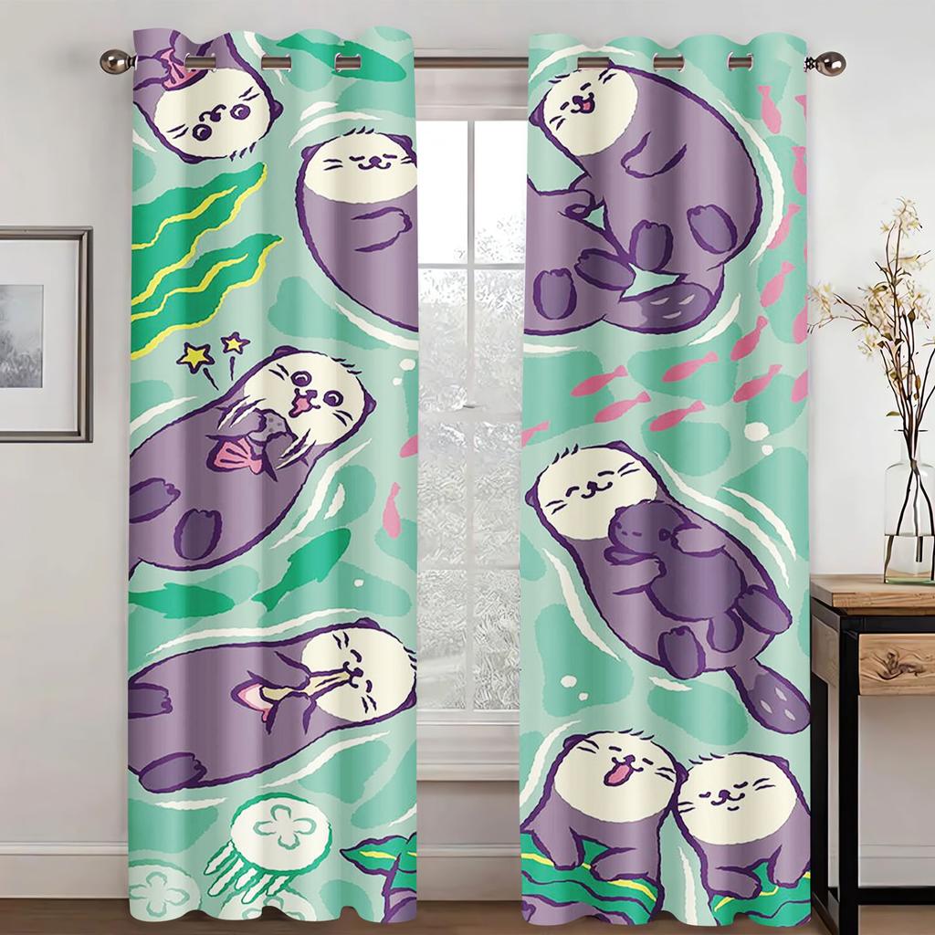 Otter, Animal Anime Printed Curtains For Living Room Home Decor Blackout Curtains Bedroom Drapes Cartoon Christmas