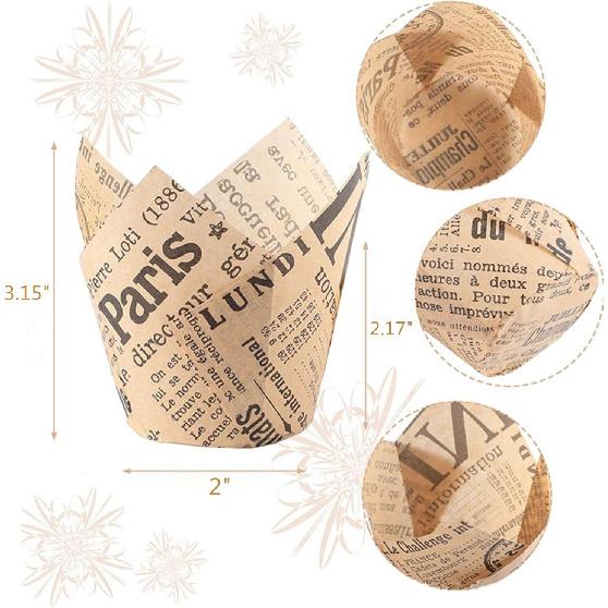 200pcs Tulip Cupcake & Muffin Tins Liners, 2” Standard Newspaper Pattern Paper Baking Cups Nature and White
