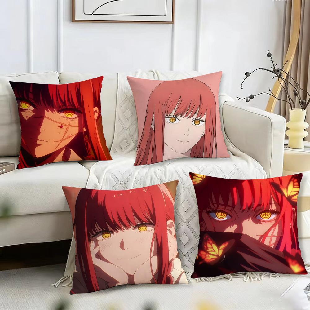 Anime Makima Chainsaw Man Cushion Cover Reversible Plush Pillow Cover – For car, sofa, bedroom, perfect as a gift.