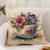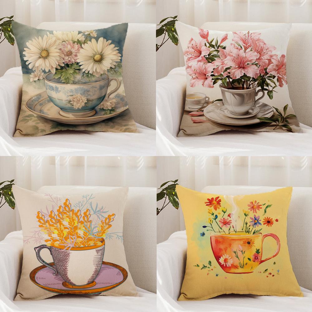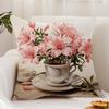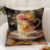 Painting Cup of Flowers Cushion Cover Premium Comfort Reversible Pillow Cover - Dual - Use Design for Home & Car