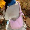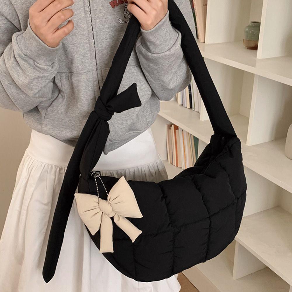 Korean Style Puffer Cloud Shoulder Bag Bow Pendant Dumpling Bag Casual Nylon Quilted Handbag Daily