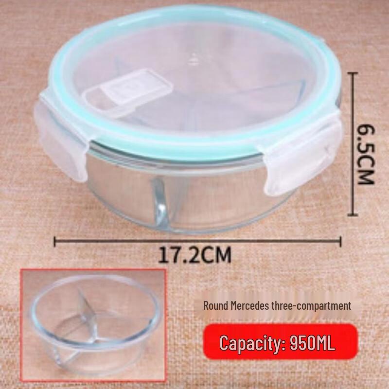 Juego de lonchera redonda de vidrio de 3 compartimentos ZISIZ
