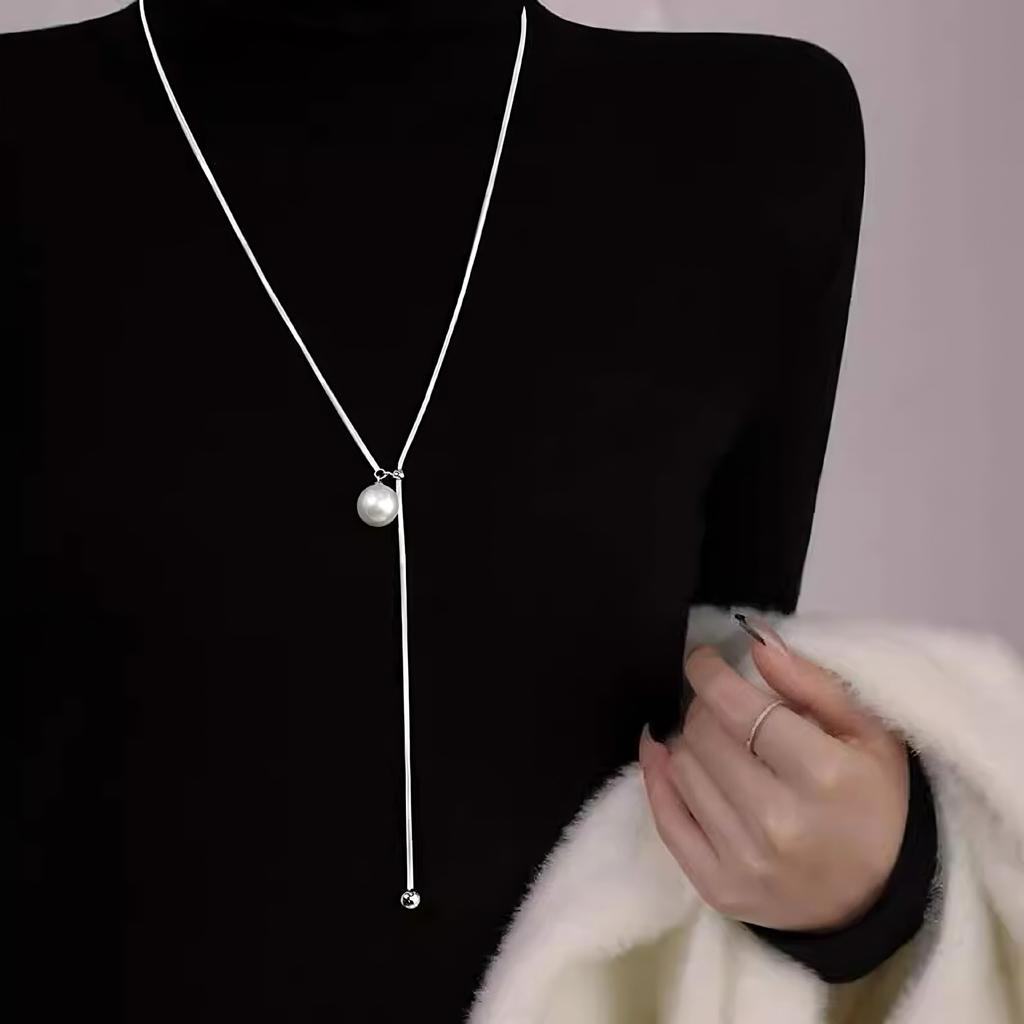 Titanium steel chain pearl long sweater chain new explosive temperament niche women's accessories