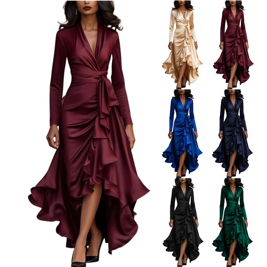 Women's Fashionable Waist,cinched Ruffled Dress With Elegant Charm