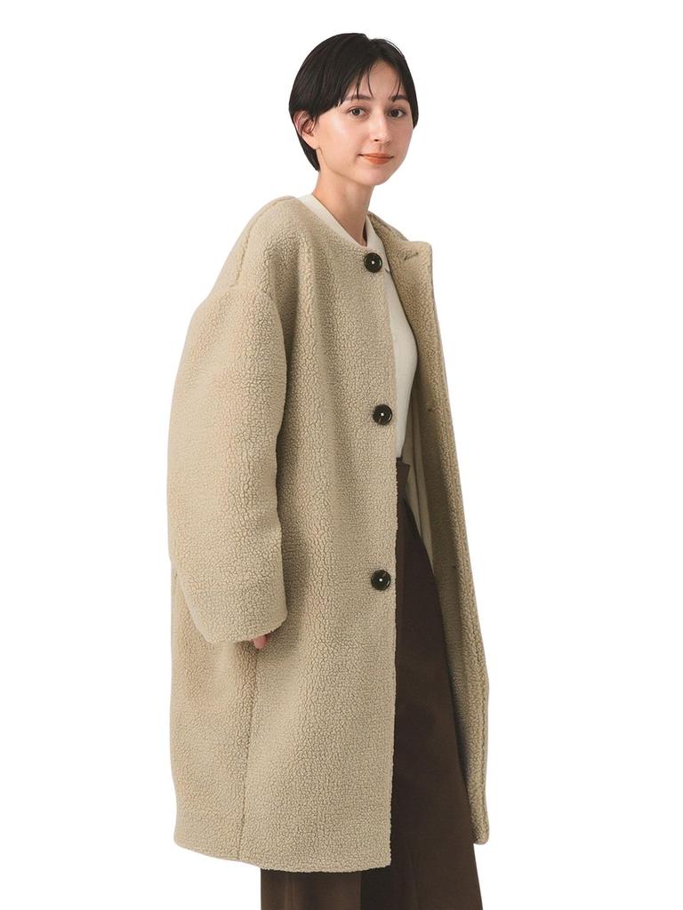 This long-length boa coat boasts a warm texture. It's a versatile piece for everyday wear, both on and off the job.