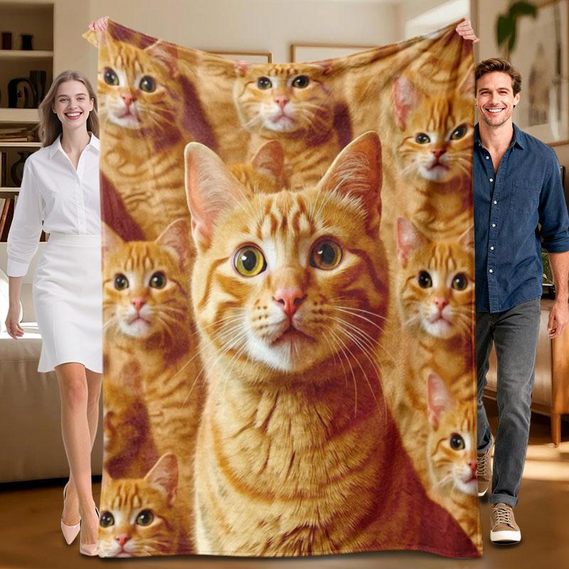 1 piece orange cat-themed flannel blanket, soft, suitable for sofa, bed, office, all-season use.