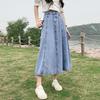 New Women's Long Skirt, Spring/Autumn Denim A-Line Pleated High Waist Slimming Umbrella Skirt