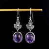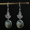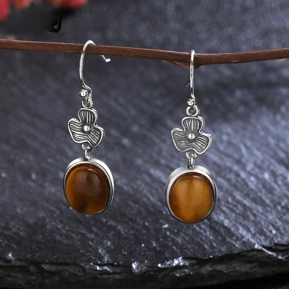 Vintage Earrings Natural Oval Tiger's Eye Stone Flower Shape S Silver Earring for Women Rhodochrosite Fine