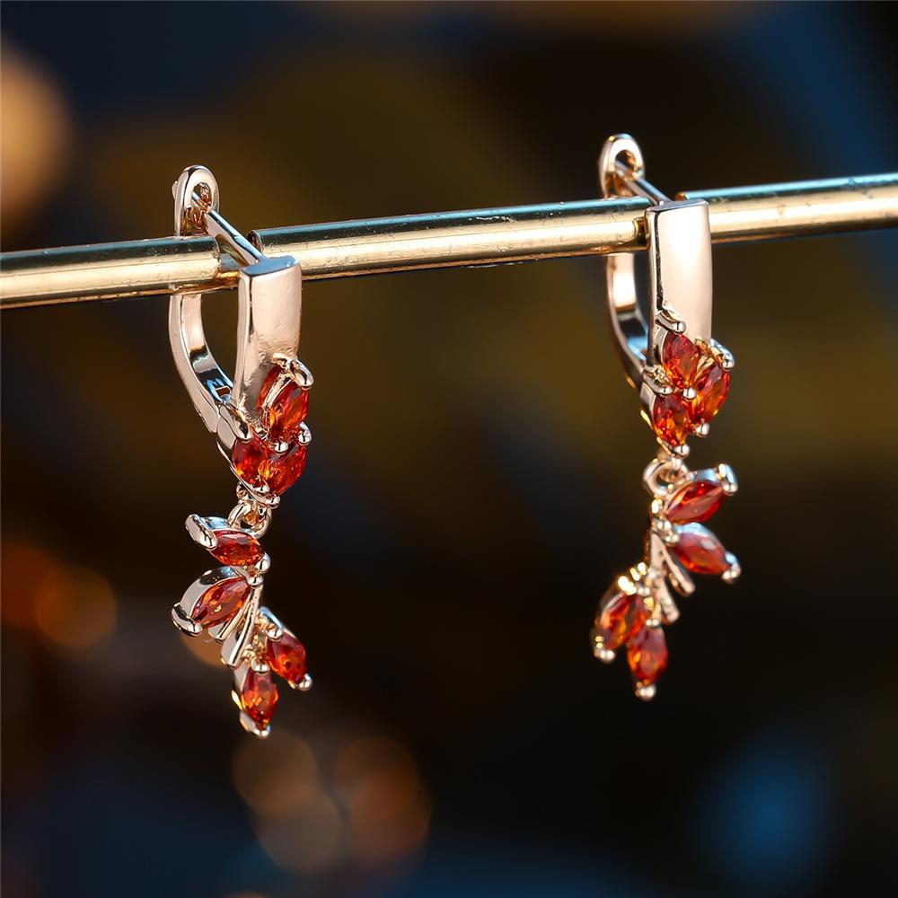 Lindos Pendientes de Aro Pequeños con Piedra de Circonita Roja Estilo Vintage Moda Color Dorado Boda Para Mujeres