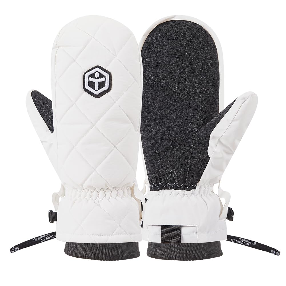 TaoTech Quilted Snowboarding and Skiing Gloves for Men and and with Inner Gloves and Leash Women, Waterproof, Warm, Abrasion-Resistant, (White - XL)