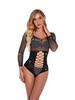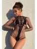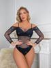 Stylish Black Fishnet Lingerie: Sexy See-Through Bodysuit with Tempting Hollow Design