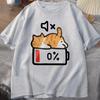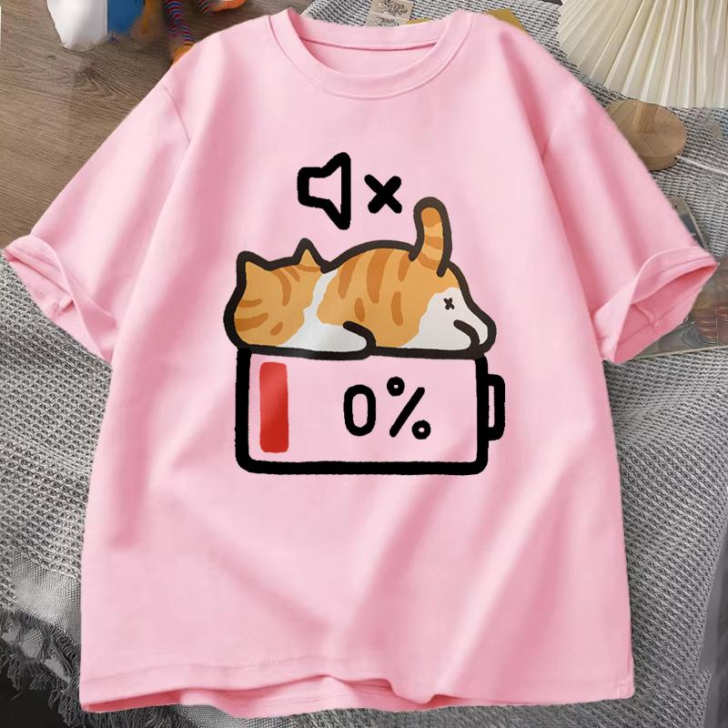 Retro Style Cat Printing Loose Short Sleeves T-shirt Woman Men Summer Round Neck Tops