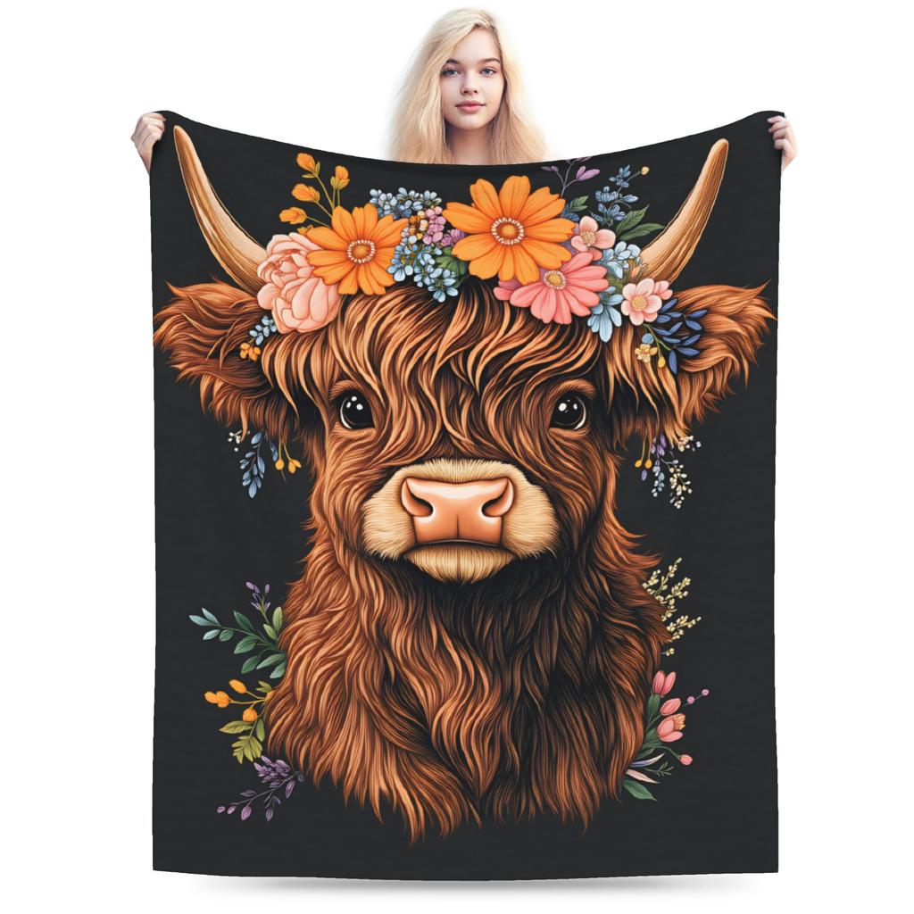Soft Blanket Girls Boys Decorative Highland Cow Themed Throw Blanket Flannel Bedspread For Outdoor Funny Sofa Bed Cover