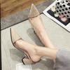 Sandalias de verano con tacón alto de 7 cm, zapatos de PVC macizo para mujer, sandalias de ante para exteriores. Zapatos Mujer Pointed Sandalias Mujer Verano