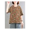 Women's 2025 New Korean Printed Pullover Retro Temperament Casual Short Sleeve T-Shirt Elegant and Versatile Top