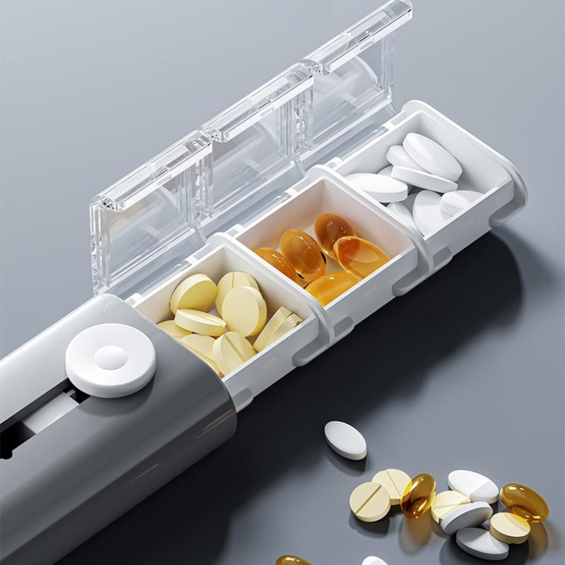 Travel Pill Case Pill Organizer Anti-Spill 3 Compartments BPA-Free and Food-Grade for Vitamins Supplements Pills Push Pop Slide