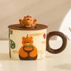 The shopkeeper recommends retro cartoon bear mug creative cute ceramic cup Kaeva women's water cup with lid gift