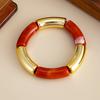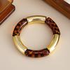 CCB Vintage Resin Round Tube Leopard print Elastic Bracelet for Women Bohemian Stackable Acrylic Bracelet Bangle Party