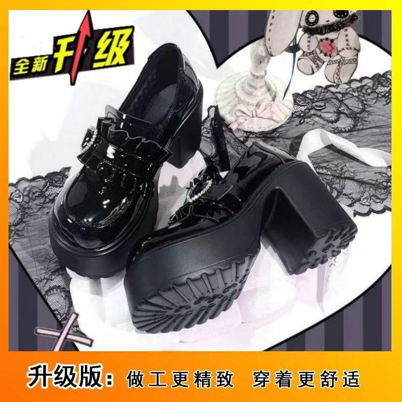 Mine subculture dark punk Japanese leather shoes loafers patent leather heightening shoes