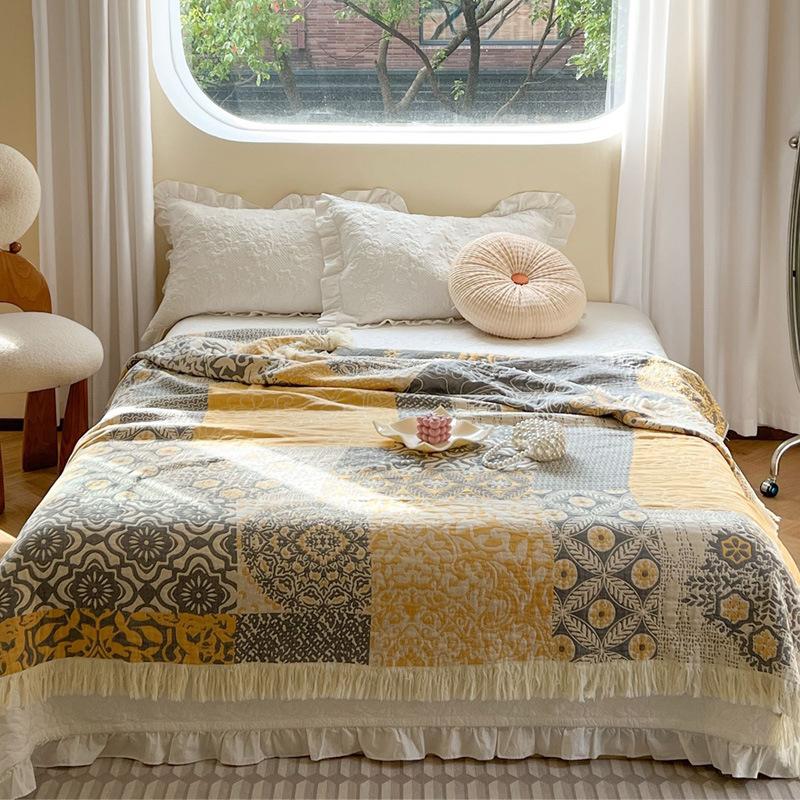 Manta de Algodón de Gasa de Cuatro Capas Sofá Toalla Espesa Colcha Individual Doble Pausa para el Almuerzo Verano Fresco Manta Cubierta de Sofá Para Adulto