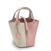 New leather first layer lychee pattern cowhide color matching vegetable basket women's bag fashion hand bag handbag bucket bag