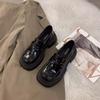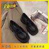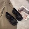 Zapatos de plataforma negros de cuero pequeño para mujer 2025 nuevos retro británicos versátiles que aumentan la altura zapatos individuales versátiles mocasines estilo universitario