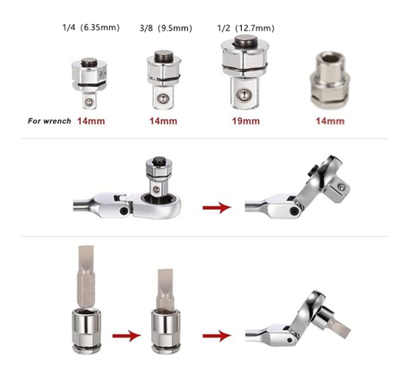 FLZOSPER Box Wrench Set, Ratchet Wrench, Extra Long Straight, 90 Gears, Mirror Finish, 8-19mm, 14-Piece Set, with Storage Case