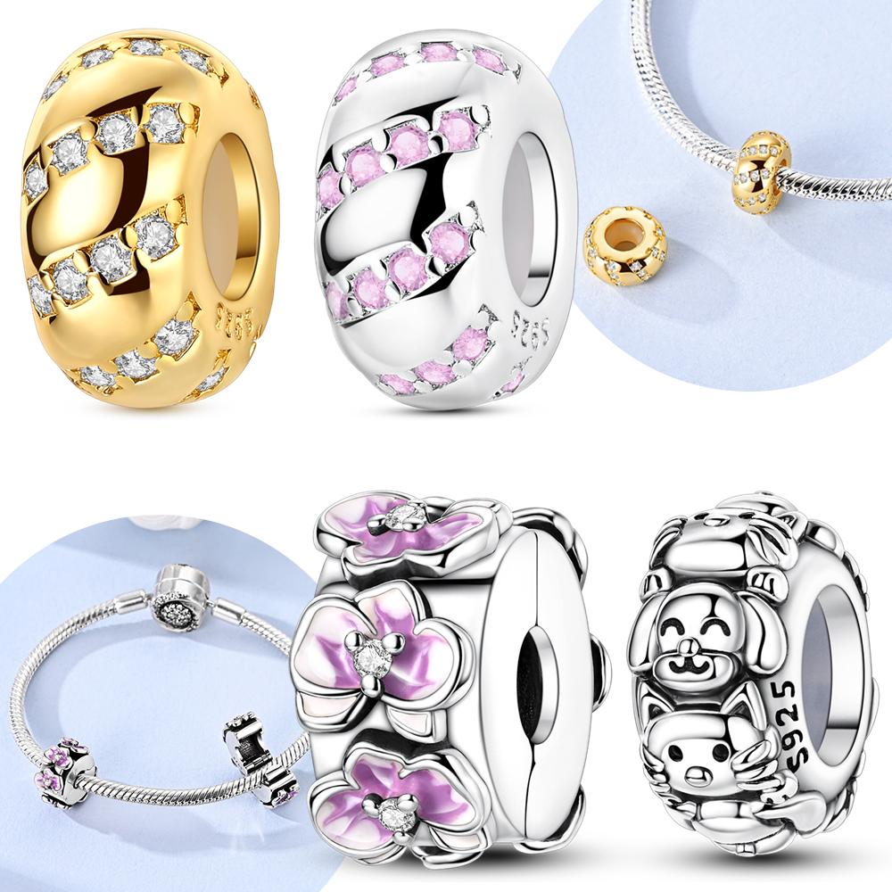 Original Pink Zirconcopper Cat Dog Butterfly Flower Gold Fixed Button Bead Fit Bracelet Women Fine Gift Jewelry Accessory