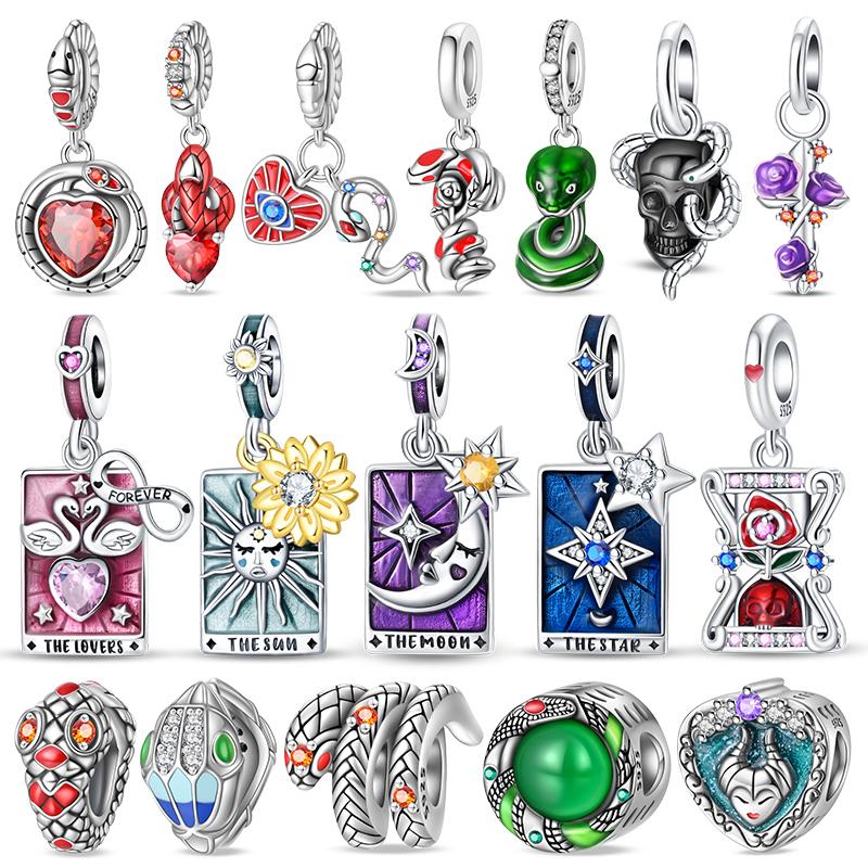 Copper Exquisite Tarot Cards Bracelet Pendants Blood Red Fire Snake Rose Charms Beads Diy Jewelry For Women