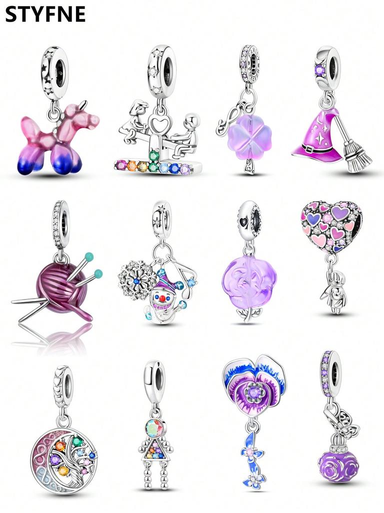Charms Plata Copper Colors Pink Flower Heart Hat Bead Charm Pendant For Original Bracelet For Women Diy Jewelry Love Gift