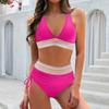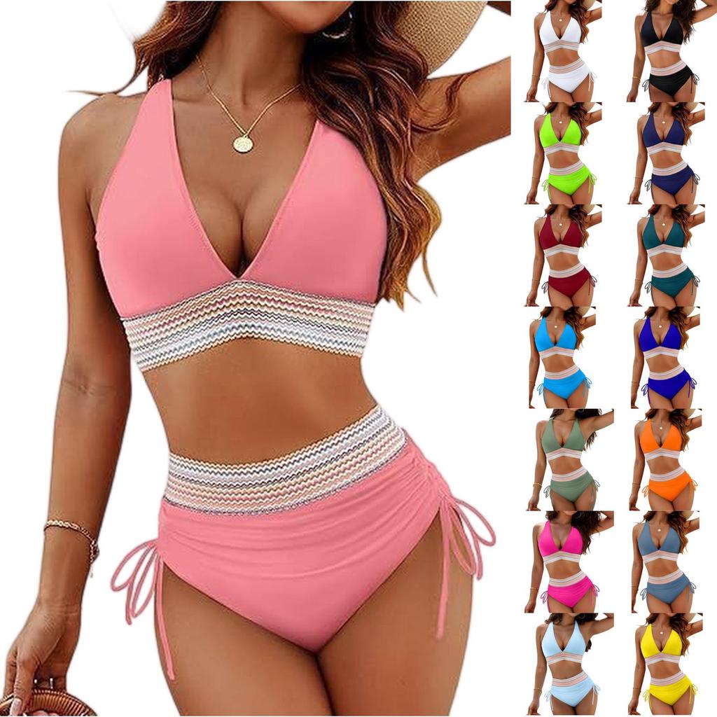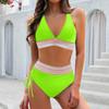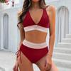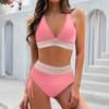 Women's Split Sexy V Neck Bikini Fashion High Waist Bra Padded No Steel Bra Swimsuit