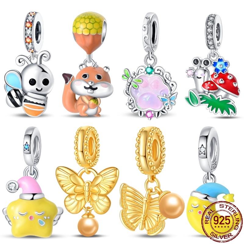 Copper Classical Butterfly Luminous Star Moon Pendant Fit 3Mm Pan Bracelet Diy Beads Fashion For Women Jewelry Gift