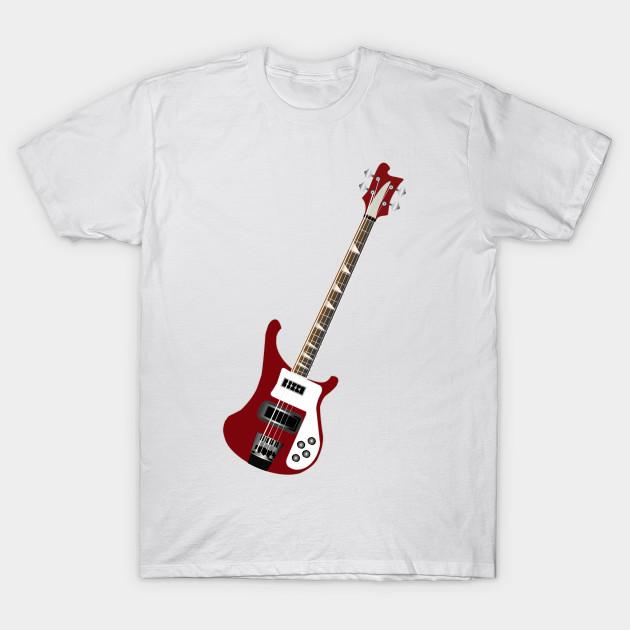Men Black Print T-shirt Rickenbacker Bass Guitar No-Cut Transfer Paper Print Cotton Tshirt