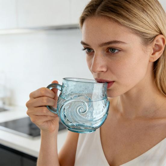 Mango Ergonómico Artístico: Diseñado tanto para el atractivo estético como para la comodidad, el mango de vidrio hecho a mano ofrece un agarre seguro y estable.. Este diseño bien pensado realza tu experiencia al beber y, al mismo tiempo, sirve como un elegante elemento decorativo en cualquier mesa o estante.