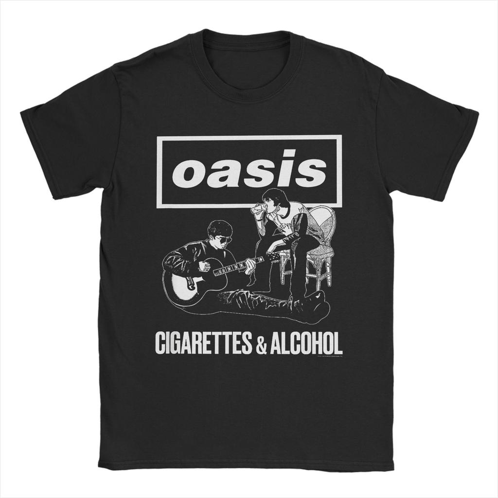 Camisetas de Cigarrillos y Alcohol para Hombres Mujeres Algodón Tops Retro Banda de Rock O-Oasis Cuello Redondo Manga Corta