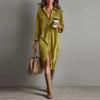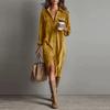 Vintage Women's Dress Spring Summer Office Lady Solid Corduroy Long Sleeve Lapel Shirt Loose Maxi Dresses for Women