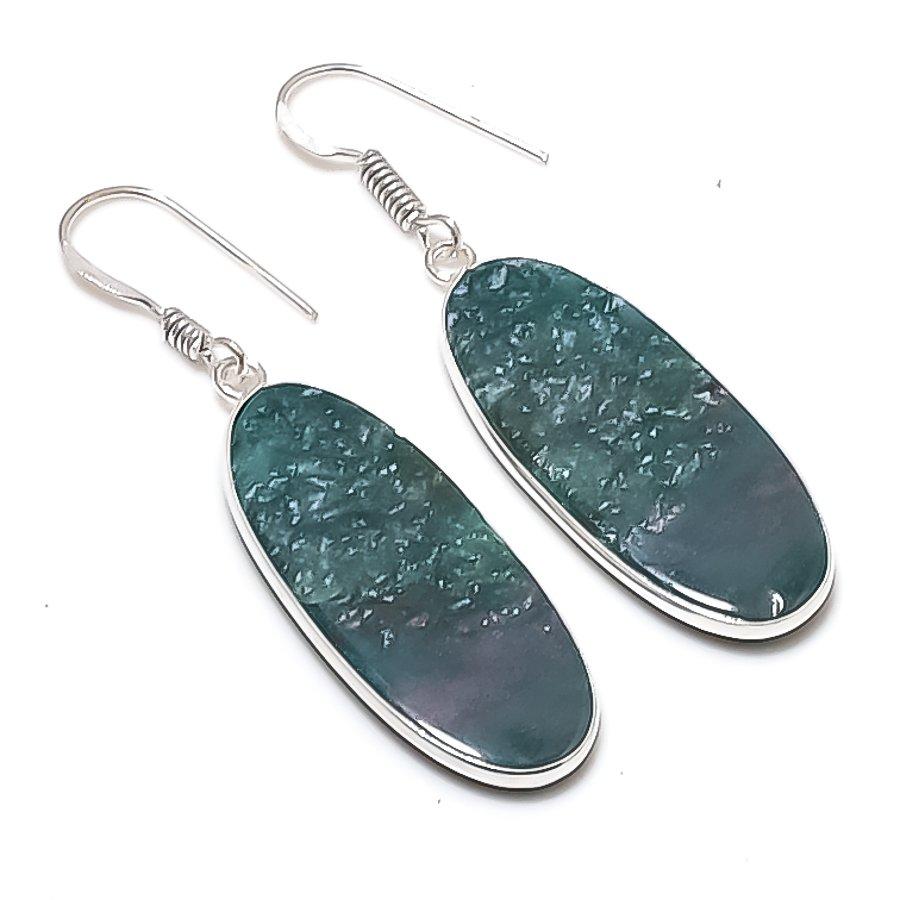 Natural Indian Moss Agate 925 Sterling Silver Jewelry Earring 2.05" AEE-10929