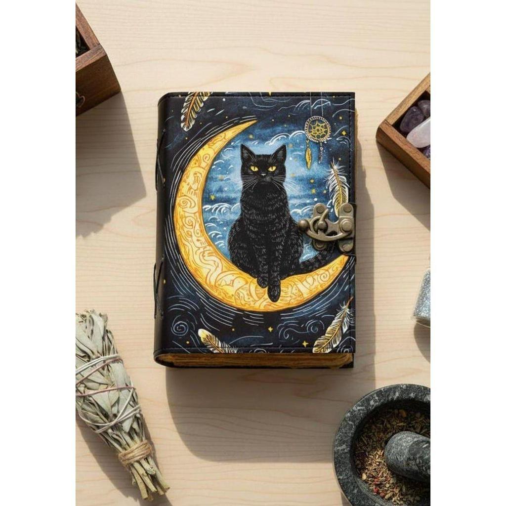 Mystical Cat Journal: Faux Leather Book of Shadows with Deckle Edge Pages, Songwriter Journal