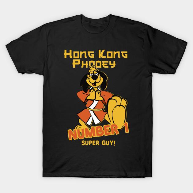 Men Black Print T-shirt Hong-Kong-Phooey-Number-One No-Cut Transfer Paper Print Cotton Tshirt