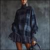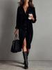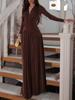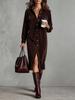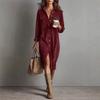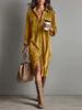 New Solid Velvet Long Sleeve Stand Collar Shirt Loose Maxi Dress