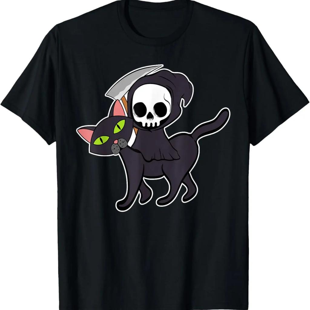 Death Rides A Black Cat Halloween Scary Apparel Item T-Shirt
