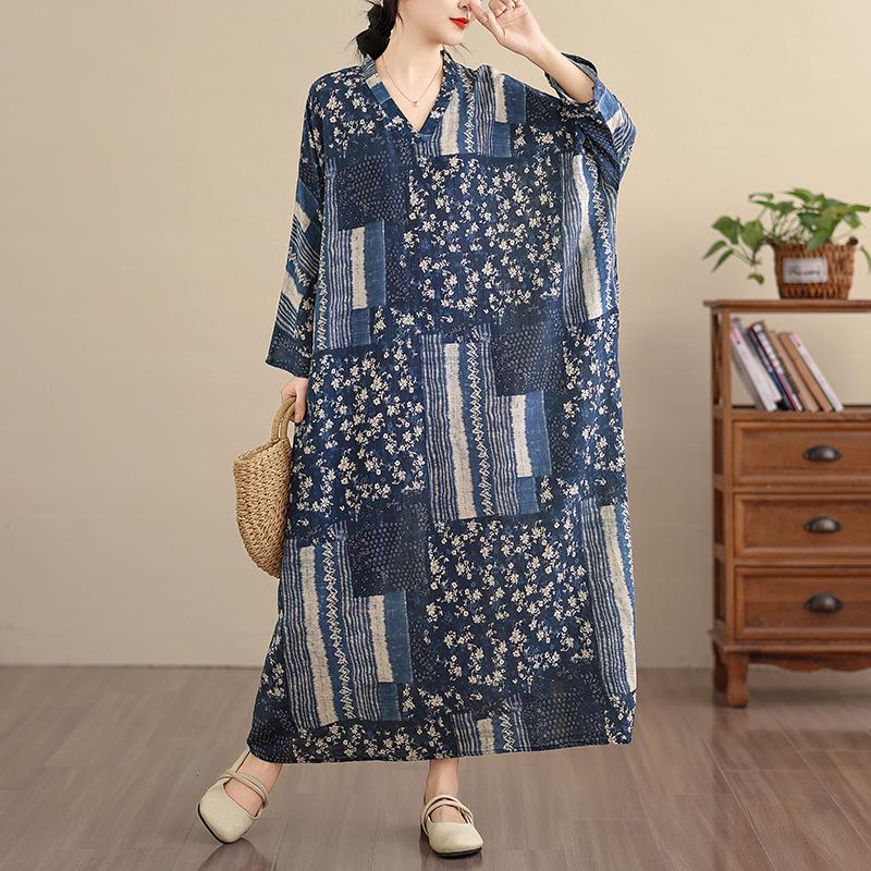 DIMANAF Spring Summer New 2026 Women Plus Size Long Dress Loose Basic Vintage Oversize Long Sleeve Maxi Floral