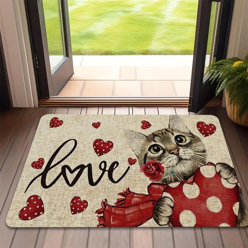 Rose Cat Valentine's Day doormat, easy to clean and durable