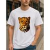 European sizes Trendy Casual Top with a Leopard Head Pattern, Versatile Everyday Wear, Graphic Print Round-Neck T-Shirt