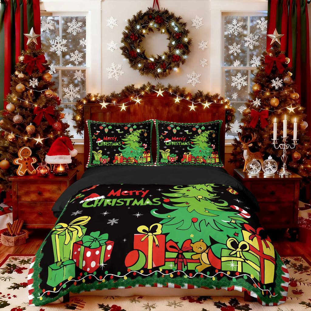 3pcs cartoon Christmas tree HO element print coreless duvet cover set multi size bedroom holiday bedding decoration