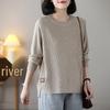 2025 Women's Plus Size Korean-Style Slimming Knit Sweater – Round Neck, Loose Fit, Solid Color for Spring & Autumn.