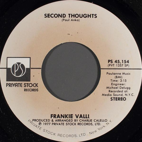 7inch Record FRANKIE VALLI Second Thoughts PS45154 PRIVATE STOCK 1977 US Rock Used