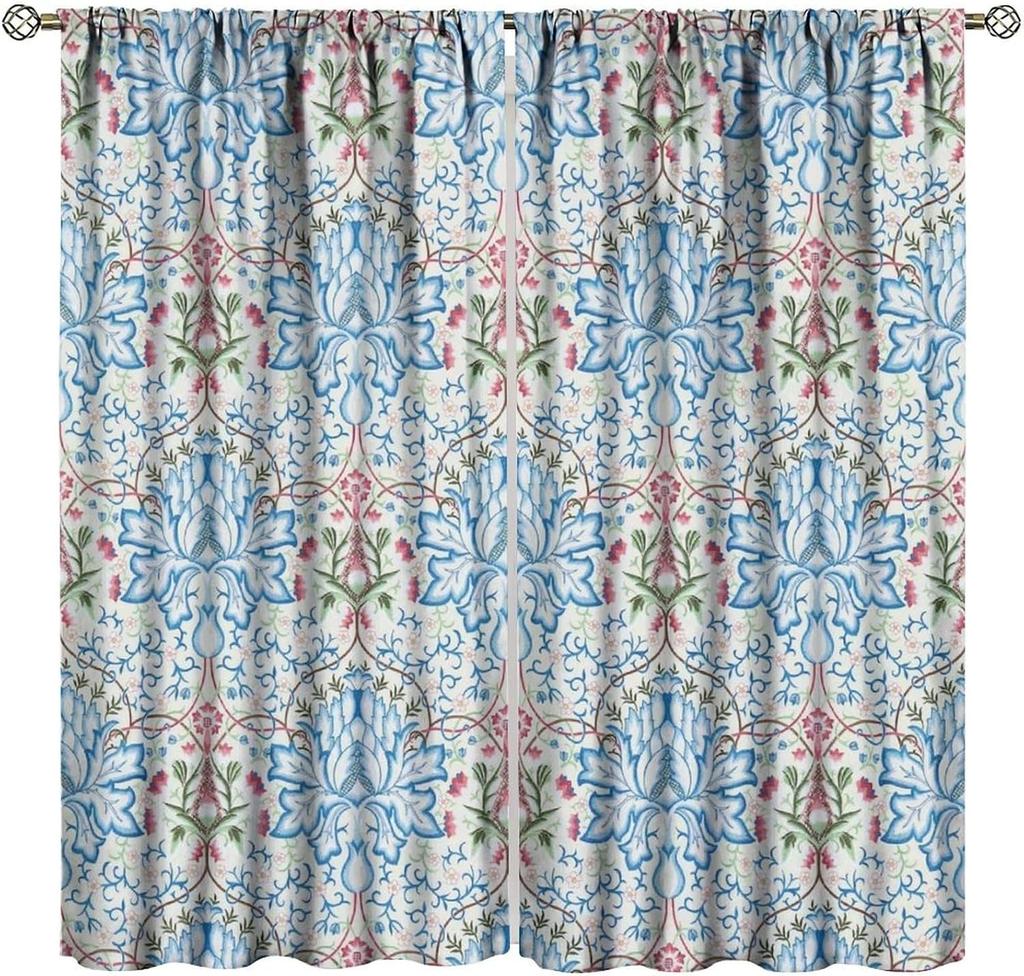 William Morris Floral Blackout Curtain Mid Century Watercolor Vintage Flower Plant Abstract Art Print Window Drapes for Living