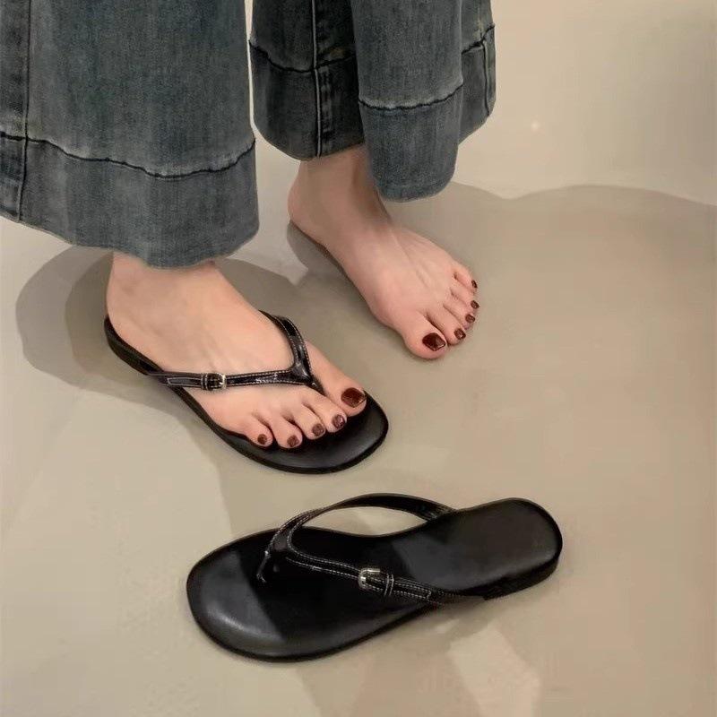 Korean flip-flops summer wear 2025 French toe slippers flat ins sandals Roman beach shoes