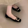 Autumn Metal Square Buckle Light Mouth Single Shoes Thick Heel Square Head Commuter Mary Jane Shoes